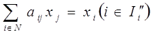 где aij– доза внесения минеральных удобрений i-го вида на 1 га j-ой культуры; xi - переменная по общей потребности в минеральных удобрениях i-го вида; Ii``- подмножество видов минеральных удобрений.