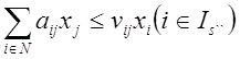 где aij, ais – коэффициенты затрат денежных средств на производство и реализацию единицы j-го вида деятельности (aij) и единицу покупного корма (ais); xis – переменная по общему объему затрат и денежных средств; I9 – множество взаимосвязей по денежным средствам при вариантных расчетах.