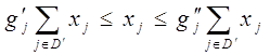 где gj` и gj`` - минимальный и максимальный пределы j-й половозрастной группы животных в структуре стада в долях; D` - подмножество половозрастных групп скота и птицы.