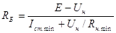Напряжение Uн, определяемое напряжением Ucт, изменяется незначительно, в связи с чем его можно считать неизменным. Тогда при изменении тока нагрузки (сопротивления Rn) и напряжения Е ток Iст будет изменяться от некоторого минимального до максимального значения. Минимальному значению тока стабилитрона будет соответствовать минимальные значения Еmax и Rmin, а максимальному значению тока стабилитрона — максимальные значения Емах и Rmax. Расчет стабилизатора сводится к тому, чтобы выбрать величину сопротивления RБ, при которой через стабилитрон протекал бы ток Ict.min. соответствующий началу его рабочей характеристики. Балластное сопротивление определяется выражением