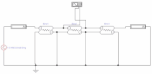 Схема для исследования короткозамкнутой ЛС содержит (рис.8) источник входного напряжения Ui частотой 200 КГц (длина волны 75 м), амперметры Al, A2 для измерения тока на входе и выходе ЛС и ЛС, по параметрам аналогичную на рис.6 для разомкнутой ЛС, но составленную из трех компонентов: LI (LEN = 75 м), L2 и L3 (LEN = 75 м).