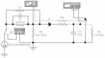 Она содержит параллельный колебательный контур на элементах L, С1, на вход которого входной сигнал подается от источника частотно-модулированных колебаний FM (режим детектирования).