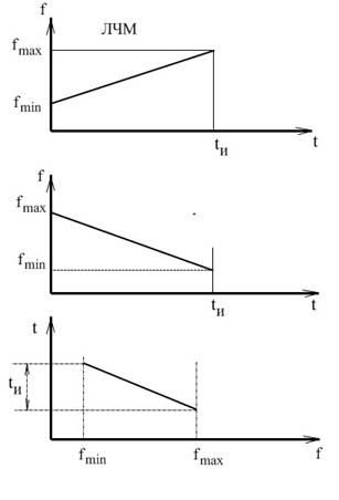 -импульсный с внутриимпульсной линейно-частотной модуляцией (ЛЧМ) текущей частоты;