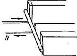 При образовании магнитного контакта отклонение стрелки было таково, что указывало на ток электричества, индуцированный в направлении, обратном тому, которое способно образовать магнит той же полярности, какой получался в действительности при соприкосновении с полосовыми магнитами. Так, когда полюс с меткой * и полюс без метки были расположены, как изображено на рис. 3, ток в спирали проходил в указанном на рисунке направлении, где Р есть конец провода, идущего к положительному полюсу батареи, т. е. тот конец, к которому обращены цинковые пластины, a N — отрицательный провод. Такой ток намагнитил бы цилиндр в противоположном направлении по сравнению с магнитом, который образуется при соприкосновении с полюсами А и В; а такой ток направлен противоположно токам, которые, согласно прекрасной теории Ампера, образуют такой магнит, какой изображен на рисунке.
