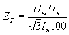 - напряжение КЗ трансформатора (в % от