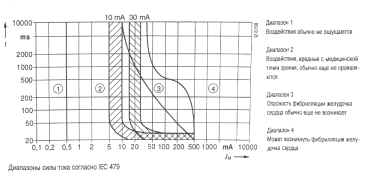 Ниже приведен любопытный график диапазонов силы тока согласно IEC 479.