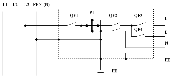Во всех случаях в цепях PE и PEN проводников запрещается иметь коммутирующие контактные и бесконтактные элементы.