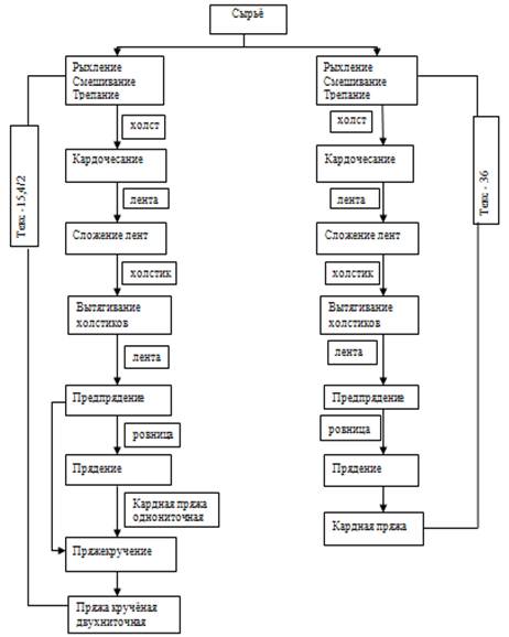 Схема №1: производственный процесс получения пряжи.