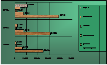Рис. 2.1 Производство товаров по видам продукции за 2006-2008 гг., тонн