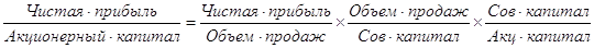 Как видим, рентабельность собственного (акционерного) капитала зависит от изменения уровня рентабельности продукции, скорости оборота совокупного капитала и соотношения собственного и заемного капитала Изучение. подобных зависимостей имеет большое значение для оценки влияния различных факторов на показатели рентабельности. Из приведенной зависимости. следует, что при прочих равных условиях отдача акционерного капитала повышается при увеличении доли заемных средств в составе совокупного капитала.