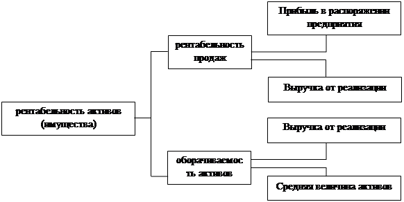 Иначе говоря, прибыль предприятия, полученная с каждого рубля средств, вложенных в активы зависит от скорости оборачиваемости средств и доли чистой прибыли в выручке от объема реализации и средней величины активов. Замедление оборачиваемости может быть вызвано как объективными причинами (инфляция, разрыв хозяйственных связей), так и субъективными (неумелым управлением запасами товарно-материальных ценностей и состоянием расчетов с покупателями, а также отсутствием их надлежащего учета).