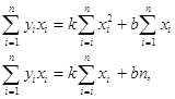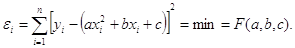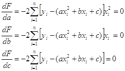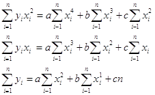 необхідно складати і вирішувати систему з трьох нормальних рівнянь, яке розв’язується, виходячи з вимоги методу найменших квадратів, тобто