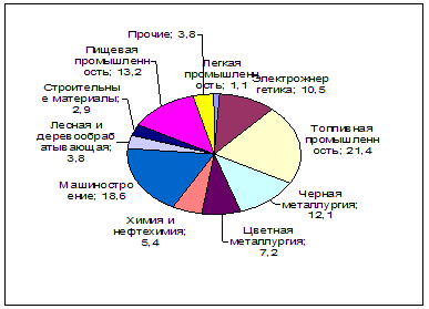Рис. 1 Структура производства промышленной продукции в РФ по отраслям в 2007 г.(15)