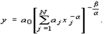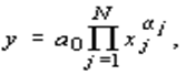 Наиболее широко распространены мультипликативно-степенные формы представления ПФ. Их особенность состоит в следующем: если один из сомножителей равен нулю, то результат обращается в нуль. Легко заметить, что это реалистично отражает тот факт, что в большинстве случаев в производстве участвуют все анализируемые первичные ресурсы и без любого из них выпуск продукции оказывается невозможным. В самой общей форме (она называется канонической) эта функция записывается так: