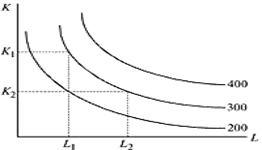 Рис. 1. Изокванты, соответствующие различному объему производства