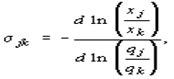 который вычисляется вдоль изокванты при неизменном уровне затрат прочих производственных факторов. Величина sjk представляет собой характеристику относительного изменения коэффициента взаимной замены ресурсов при изменении соотношения между ними. Если отношение взаимозаменяемых ресурсов изменится на sjk процентов, то коэффициент взаимной замены sjkизменится на один процент. В случае линейной производственной функции коэффициент взаимной замены остается неизменным при любом соотношении используемых ресурсов и поэтому можно считать, что эластичность s jk = 1. Соответственно большие значения sjk свидетельствуют о том, что возможна большая свобода в замене производственных факторов вдоль изокванты и при этом основные характеристики производственной функции (продуктивности, коэффициент взаимозамены) будут меняться очень слабо.