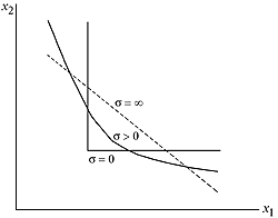 в этом случае эластичность замещения ресурсов не зависит ни от K, ни от L и, следовательно, постоянна:
