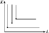 Если изокванта отражает лишьодин технологический способ производства данного продукта, то труд и капитал комбинируются в единственно возможном сочетании (рис. 5).