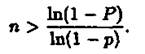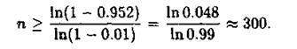 Розв'язання. Застосовуючи формулу (2), знайдемо спочатку таку кількість виготовлених деталей, щоб з імовірністю р = 0.952 можна було стверджувати про наявність хоча б однієї бракованої деталі, якщо імовірність браку за умовою р = 0.01