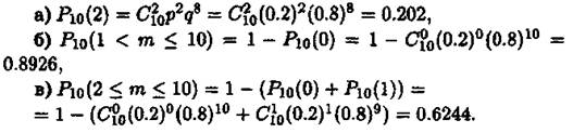 Згідно з умовою задачі п = 10. Використовуючи формулу Бернуллі та Зауваження 1, одержимо