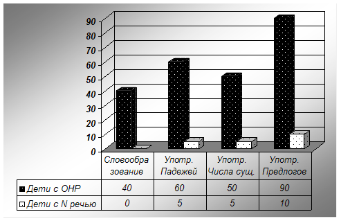 Сравним в диаграмме особенности грамматического строя детей с ОНР и детей без речевых нарушений