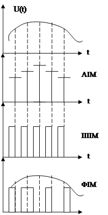 При амплітудно-імпульсній модуляції дискретизацію сигналу проводять по часу. Реальній величині ставлять у відповідність певне значення амплітуди сигналу, яке він приймає в моменти квантування.