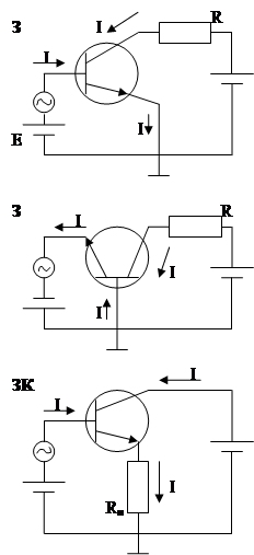 Оскільки транзистор, маючи три виводи, може бути ввімкнений як чотириполюсник, то один з електродів має бути спільним для вхідного і вихідного кола.