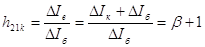 - коефіцієнт підсилення транзистора у схемі із загальним колектором.