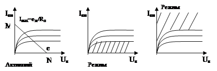 1. активний режим, емітерний перехід ввімкнено у прямому напрямку, колекторний – у зворотному. Використовується в аналоговій електроніці.