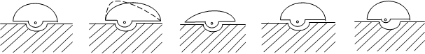 Требуемая функциональная характеристика может быть получена приданием специального очертания роторным пластинам или при помощи выреза на статоре, а также всевозможных изломов контурах пластин, ступенчатых радиусов, подключением дополнительной ёмкости и т. д. На рисунке 2.4 изображены очертания пластин различных конденсаторов. Из них следует, что роторные пластины прямочастотных КПЕ имеют чрезвычайно вытянутую форму. Это понижает механическую жёсткость ротора и увеличивает объём конденсатора. Для устранения этого форму пластин изменяют, получая её очертания при помощи 2-х и 3-х сопрягаемых поверхностей (окружностей различного радиуса); площадь такой упрощённой пластины выбирается равной площади пластины правильной формы (очертание показано пунктиром).