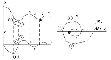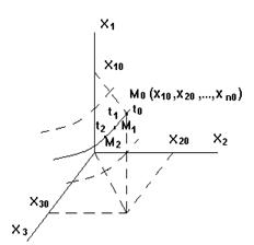 в любой момент времени характеризует состояние (фазу) системы и определяет координаты системы имеющей n – осей и могут быть представлены как координаты некоторой (изображающей) точки М (рис. 2).
