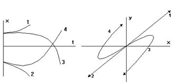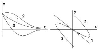 Проанализируем связь между характером переходного процесса и кривыми фазовых траекторий. Фазовые траектории могут быть получены либо путем интегрирования уравнения фазовой траектории, либо путем решения исходного дифференциального уравнения 2-го порядка.