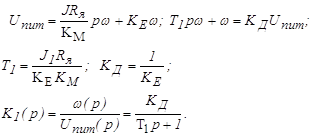 Передаточную функцию для якорной цепи K1(p) можно получить из ее дифференциального уравнения
