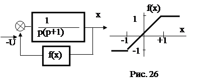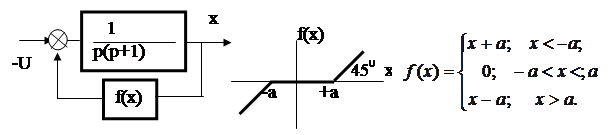 Пример 2. Пусть задана система с характеристикой нелинейного звена типа "зона нечувствительности" (рис. 21). Необходимо построить фазовый