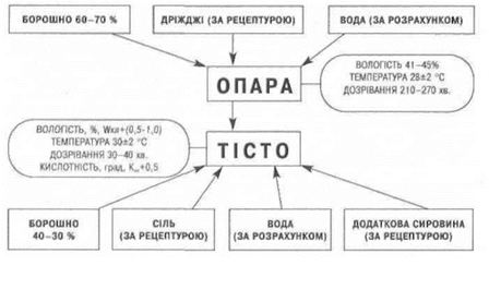 Обраний спосіб приготування тіста має забезпечити набуття тістом оптимальних для його оброблення реологічних властивостей, накопичення у ньому продуктів бродіння, які обумовлюють смак і аромат виробів, належну розпущеність тіста при випіканні для одержання пористої м'якушки хліба.
