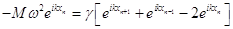 Разделим последнее уравнение на exp(ikxn) и воспользуемся тем, что xn+1 = xn+a, xn–1 = xn–a: –Mω2 = γ(eika+e–ika–2) (9).