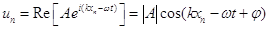 Точнее, колебания представляют собой произвольную сумму таких волн. Здесь φ – фаза комплексной амплитуды A: A = |A|exp(iφ). Смещение – вещественная величина, которая описывается вещественной частью комплексной плоской гармонической волны, что явно записано в (13). В дальнейшем, при описании вещественных колебаний комплексной плоской волной, будем для краткости опускать обозначение вещественной части.