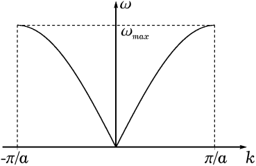 График зависимости ω(k) для одномерной цепочки с одним атомом в примитивной ячейке изображен на рис. 1.2.