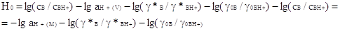Из этого выражения следует, что Н0не равно логарифму активности протона, а отличается от него на величину логарифма отношения коэффициентов активности