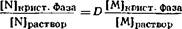 Если процесс осаждения или кристаллизации протекает так, что микрокомпонент гомогенно распределяется в кристаллической фазе макрокомпонента, т.е. если кристаллическая фаза в целом находится в равновесии с раствором, то в идеальном случае имеет силу следующее соотношение: