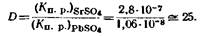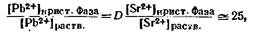 Применение вышеизложенных принципов к системе сульфат свинца – сульфат стронция приводит к выводу, что следы свинца можно выделить соосаждением с сульфатом стронция. Оба эти сульфата изоморфны и образуют смешанные кристаллы. Вычислим значение D из отношения произведений растворимости при 18°: