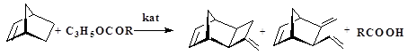 Строго говоря, взаимодействие НБН и аллилацетата не является содимеризацией. Аллилацетат выступает лишь как источник фрагмента С3Н4, присоединяющегося к НБН при помощи каталитического комплекса. Эта реакция является первым примером использования аллиловых эфиров органических кислот в подобных процессах и представляется интересным методом получения полициклических соединений.