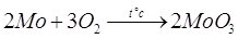 Литой и плотно спеченный молибден при комнатной и слегка повышенной температуре стоек против действия воздуха и кислорода (1, 12). При нагревании до темно-красного каления поверхность металла быстро тускнеет и около 600°С молибден загорается, выделяя белый дым – возгон МоО3. Налет окисла легко разрушается и при длительном нагревании происходит полное сгорание металла до МоО3. Молибденовый порошок окисляется при еще более низкой температуре, а наиболее мелкий порошок способен самовозгораться на воздухе. При нагревании во влажной атмосфере, в среде восстановительного или инертного газа, не очищенных тщательно от кислорода и паров воды, наблюдается постепенное более или менее полное окисление металла по реакции: