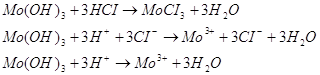Сухой Мо(ОН)3 - это аморфный порошок, не растворимый в воде и растворах щелочей. Он проявляет основные свойства. Легко растворяется в растворах минеральных кислот, при этом образуются соли Мо3+.