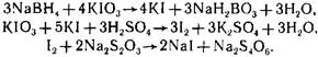 Другими исследователями предложен титриметрический метод, основанный на реакции борогидрида натрия с иодатом калия и последующим иодометрическим определением избытка иодата
