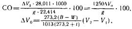 где W0 — приведенный к нормальным условиям объем водорода, израсходованного на восстановление СО-групп, см3; V1 — объем водорода, выделившегося в рабочем опыте, см3; V2 — объем водорода, выделившегося в контрольном опыте, см3; В — барометрическое давление, ГПа; U'' — давление паров воды при температуре /, если газ собирается над водой, ГПа; / — температура окружающей среды, 0C; 28,011 — масса 1 ммоля СО-групп, мг; 22,414 — объем 1 ммоля водорода при нормальных условиях, см3; g — масса абсолютно сухой навески целлюлозы, г.