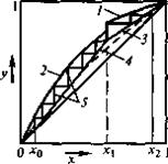 Рис.1.1. Диаграмма равновесия и построение теоретических ступеней в присутствии экстрагирующего агента.