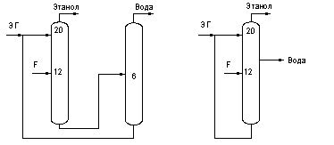 Рис.1.7. Схемы со связанными тепловыми потоками и минимальным числом колонн для n=2-3.