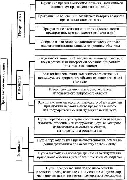 Рис. 3. Возникновение, изменение и прекращение права экологопользования