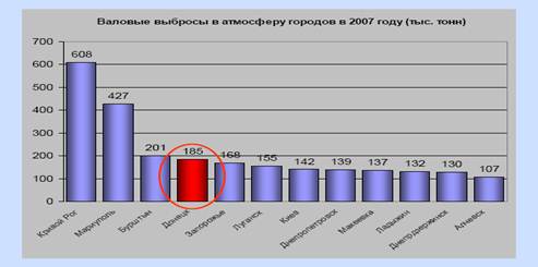 Для Донецка, как промышленного мегаполиса, вопросы загрязнения воздушной среды особенно актуальны. По данным Министерства охраны окружающей природной среды, из 53 городов, в которых проводятся наблюдения за состоянием атмосферного воздуха на стационарных постах, г. Донецк входит в число самых загрязненных городов Украины и занимает по ситуации на 2007 год 4 место.